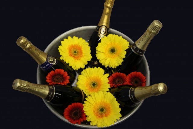 Icebowl s pěti druhy champagne (5x750 ml) s květinovou dekorací